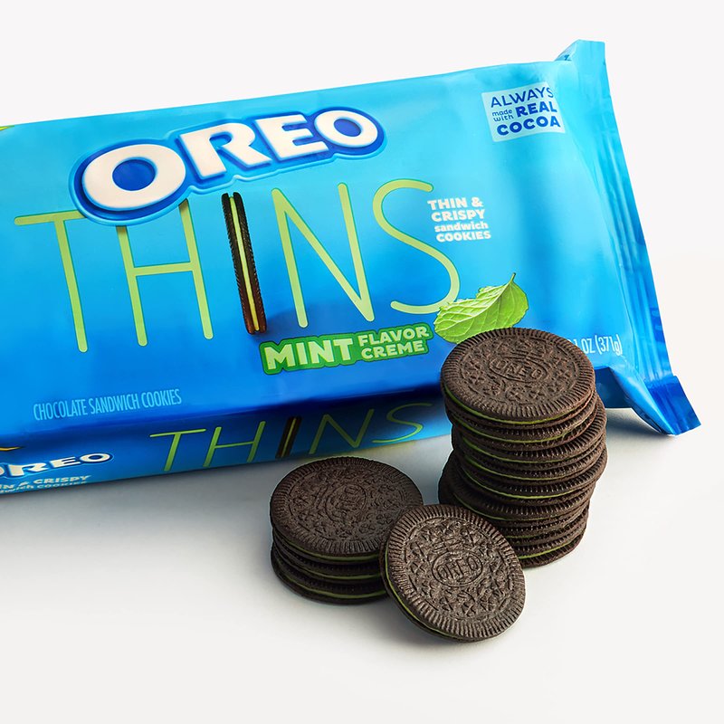 - 13.1 oz family size pack of OREO Thins Mint Flavored Creme Chocolate Sandwich Cookies (packaging may vary)