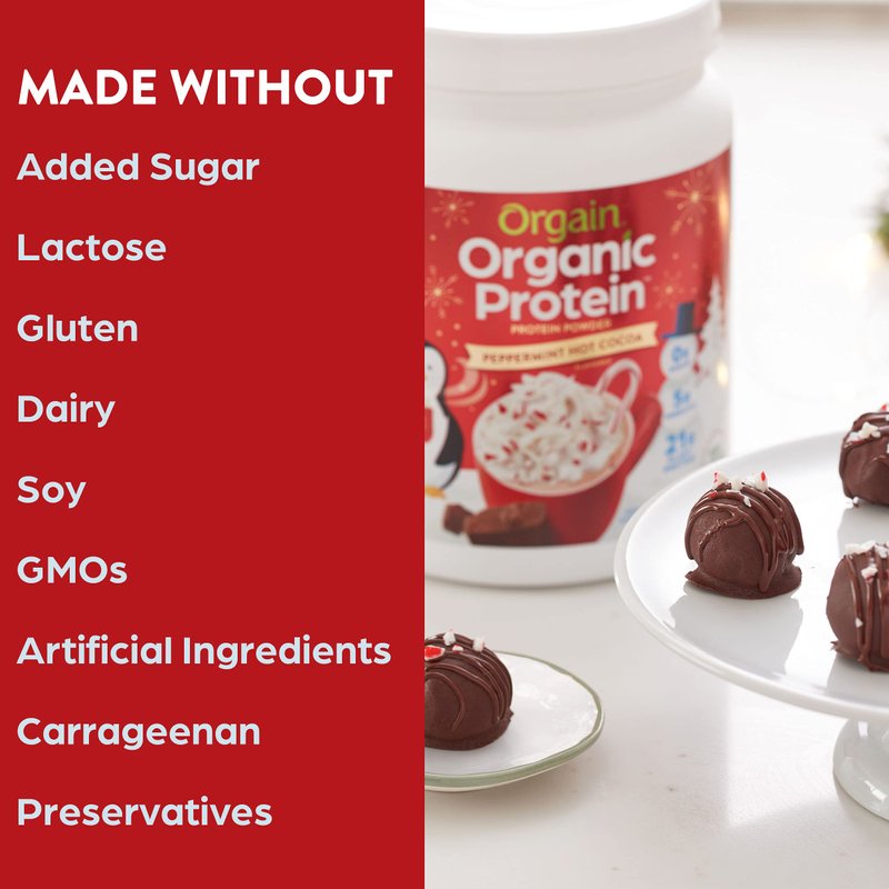 Orgain Organic Vegan Protein Powder, Peppermint Hot Cocoa Holiday Flavor - 21g of Plant Protein, 5g Prebiotic Fiber, No Lactose Ingredients, No Added Sugar, Non-GMO, For Shakes & Smoothies, 1.02 lb