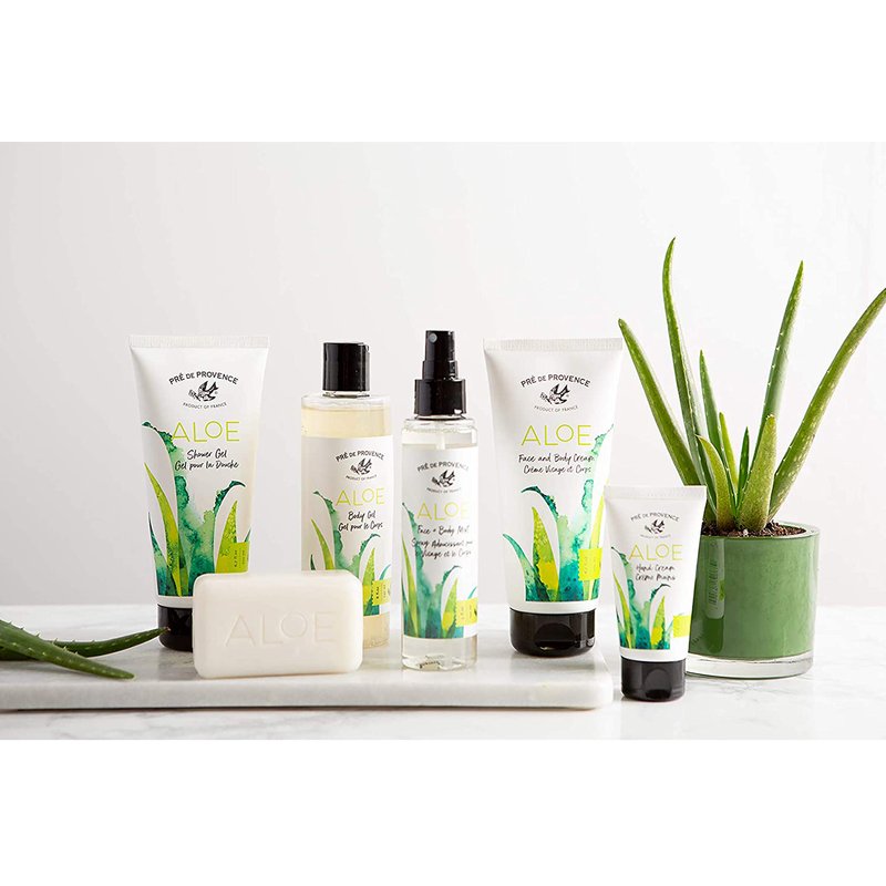 - MIX + MATCH - Choose from six decadent Aloe Collection products such as bar soap, shower gel, hand cream, face and body spray, and body gel.