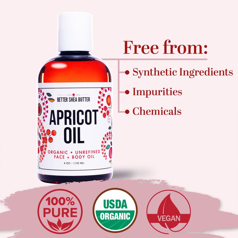 Organic Apricot Oil | 100% Pure, Cold Presssed | Massage Oil for Body and Face | Oil for Sensitive Skin | 4 oz by Better Shea Butter