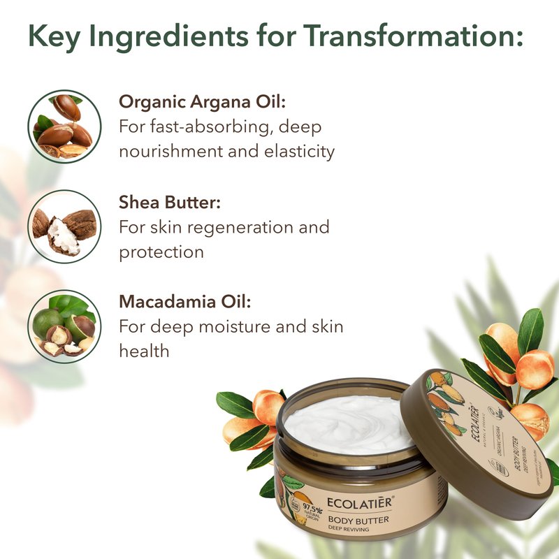 - Luxurious Body Oils for Women: Ecolatier's Argana Body Butter is a blend of rich Argan Oil Organic and nourishing ingredients, offering an indulgent experience for women seeking deep hydration and skin nourishment, making it an organic body butter.