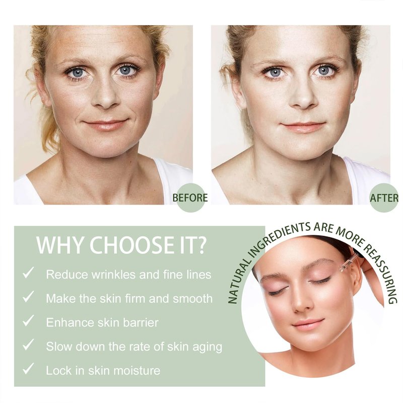 Avocado anti wrinkle serum is mixed with hyaluronic acid and plant extract, aiming at the most common signs of aging, including firming, fine lines and wrinkles