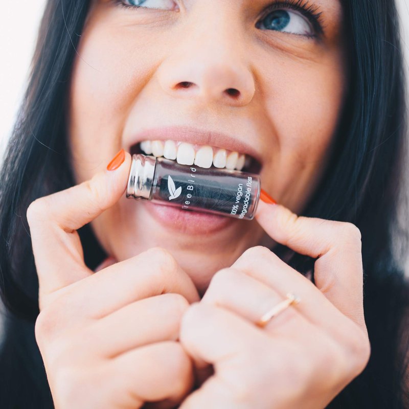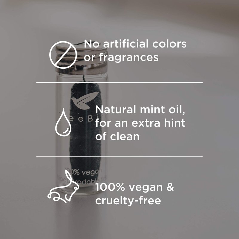 Organic Biodegradable Bamboo Charcoal Dental Floss & Refillable Glass Holder | Vegan | Naturally Waxed with Candelilla Wax | 33yd Thread Spool | Eco-Friendly Zero Waste Oral Care | Mint Flavored