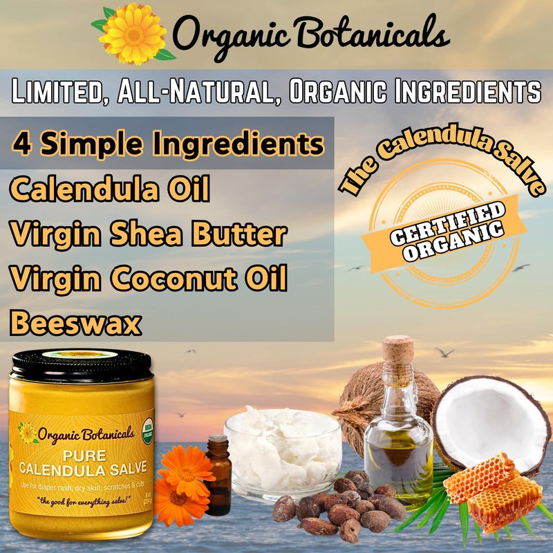 - Certified Organic Calendula Ointment - Our calendula first aid cream is a multi-use healing ointment skin product made from locally grown organic calendula flowers. Not only great as a calendula burn cream, but also a skin soother healing balm.