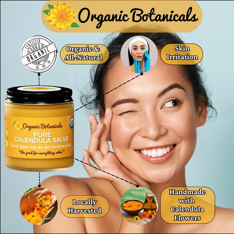 Organic Botanicals Pure Calendula Salve Healing Balm - Calendula Cream Healing Hand Salve Ointment from Local Organic Calendula Flowers, Calendula Gel Eczema Ointment, Certified Organic 2 Oz