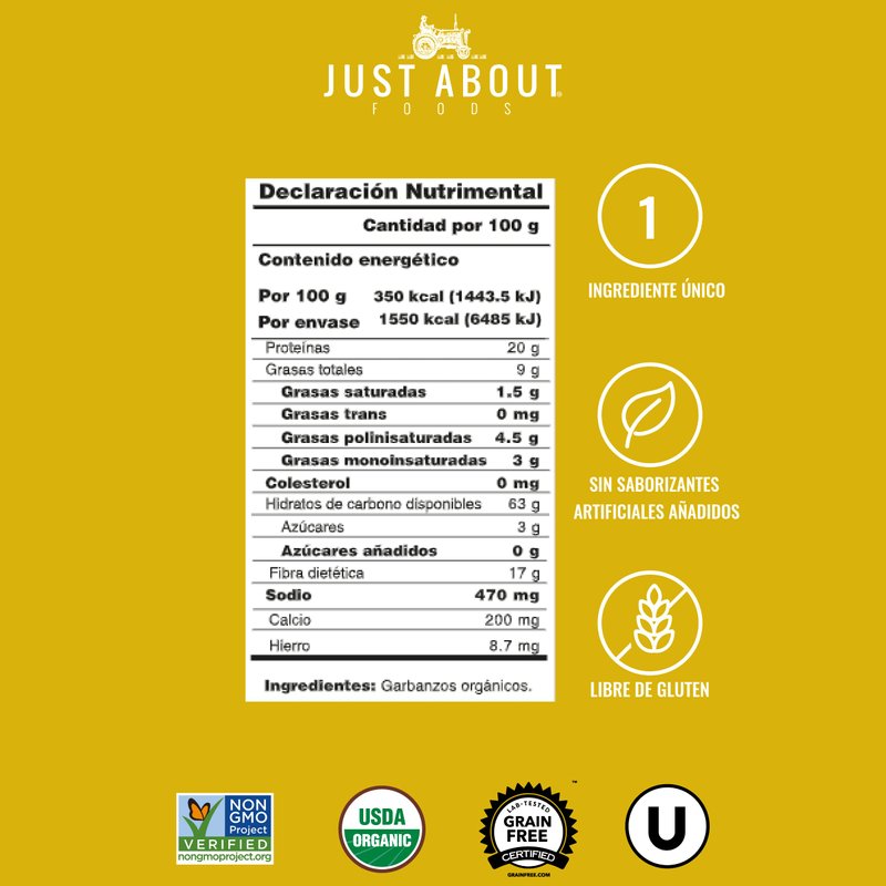 Organic Chickpea Flour 1lb (454 g) USDA Organic Gluten Free Grain free Non GMO Kosher Pack of 1 | Just About Foods