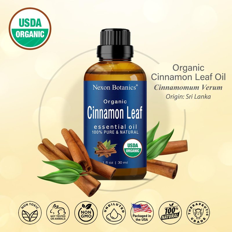 - Nexon Botanics' Organic Cinnamon Essential Oil is pure, natural and certified USDA.