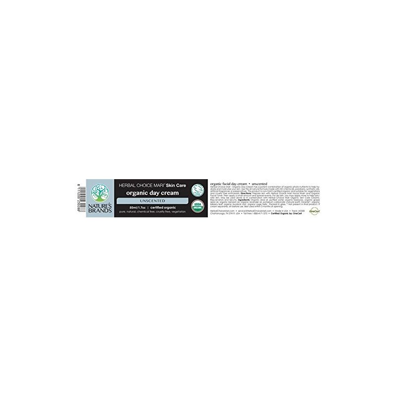 Organic Day Cream (Unscented) by Herbal Choice Mari; 1.7 Fl Oz Glass Jar; Moisturizer for All Skin Types