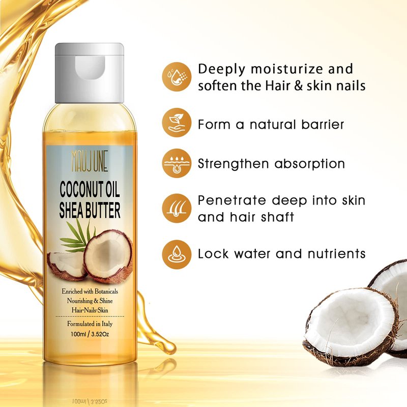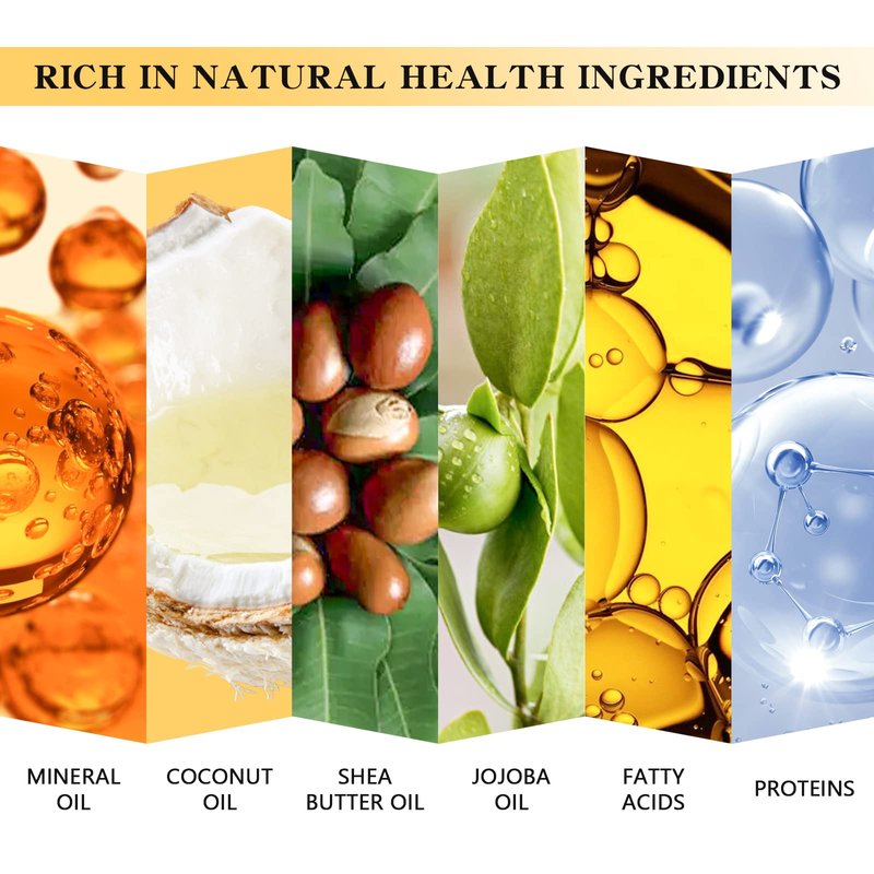 - 【SALON-LIKE TREATMENT】Coconut Oil & Shea butter Oil for hair/skin locks in natural moisture by boosting superior hydration levels. Its penetrating vitamins tame frizzy, brittle hair from roots to ends, and balances hair oil production.Deeply supplement nutrients.Repair, nourish, fixed split ends.