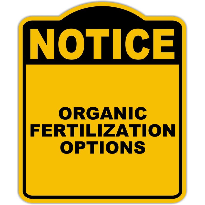 ORGANIC FERTILIZATION OPTIONS Notice Yellow Black Aluminum Composite Sign 8.5 x 10 inches