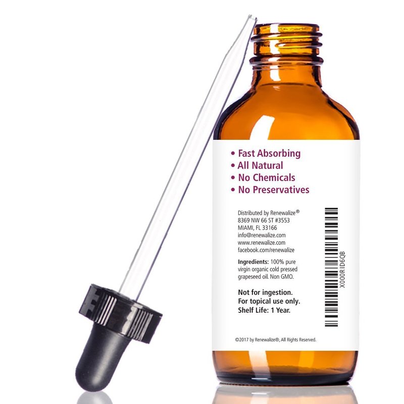 ORGANIC GRAPESEED OIL Anti-Aging Moisturizer - Facial Cleanser in 4 oz Glass Bottle | Unrefined, Cold Pressed Grape Seed Oil | Essential to Reduce Skin Wrinkles and Stretch Marks