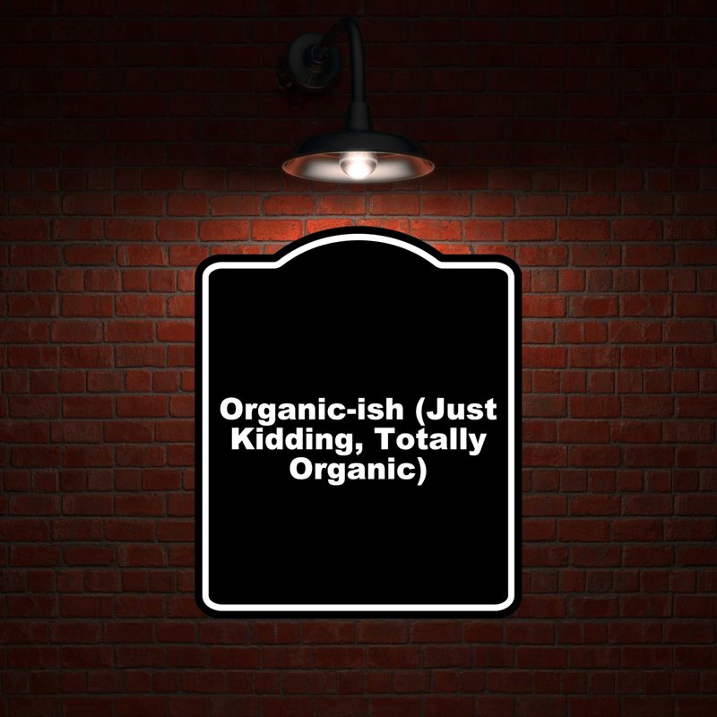 Organic-ish (Just Kidding, Totally Organic) Black Funny Aluminum Composite Sign 8.5 x 10 inches