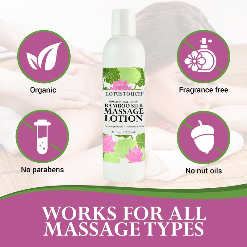 - LOTUS TOUCH ORGANIC NATURALS BAMBOO SILK MASSAGE LOTION - A powerful blend of renewable bamboo silk powder, green tea extract, and organic aloe vera juice