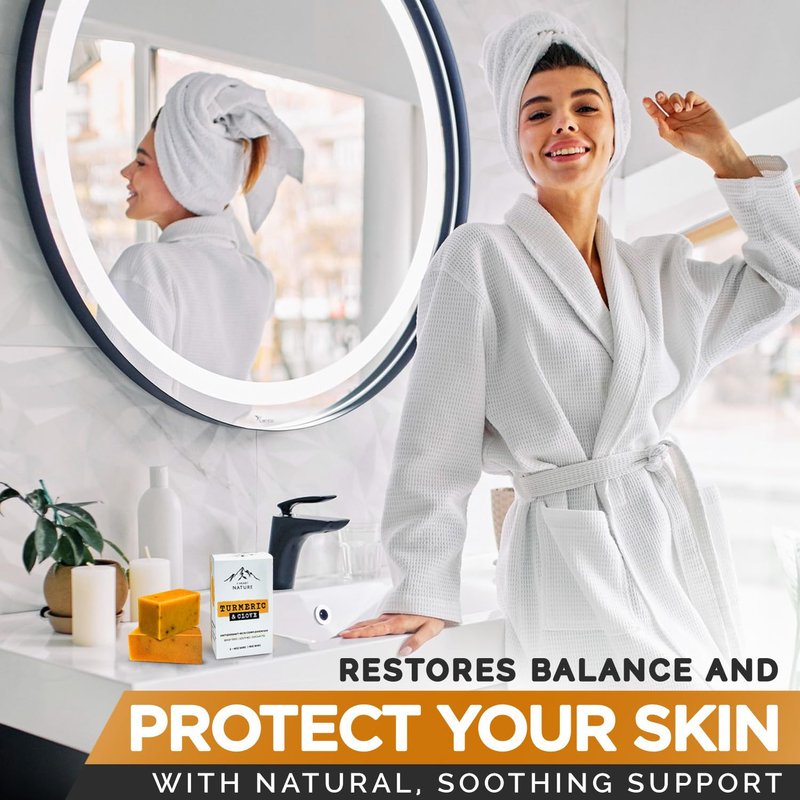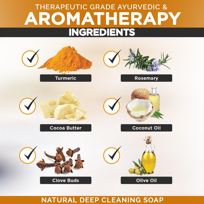- Hydrating and Moisturizing: Our turmeric soap bar is infused with turmeric and clove, combined with nourishing natural oils and butter sourced from botanicals. Specifically formulated for all skin types.