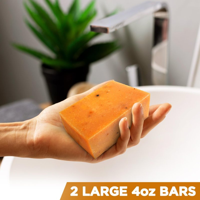 - Best Value Per Ounce - Long Lasting (4 OZ - 2 Packs) Bar Soap: Elevate your bathing experience with our Turmeric body soap. With its generous 6-ounce size, this bar of soap lasts three times longer than your average soap and keeps your skin nourished and refreshed for an extended period.