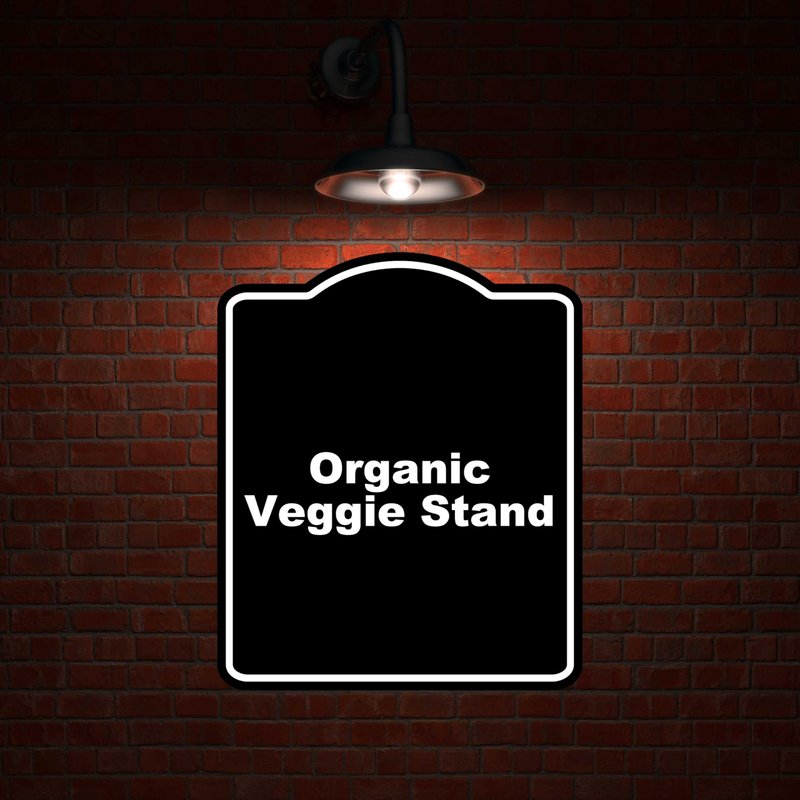 Organic Veggie Stand BLACK Minimalist Aluminum Composite Sign 8.5 x 10 inches