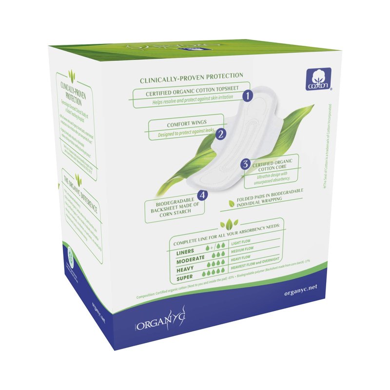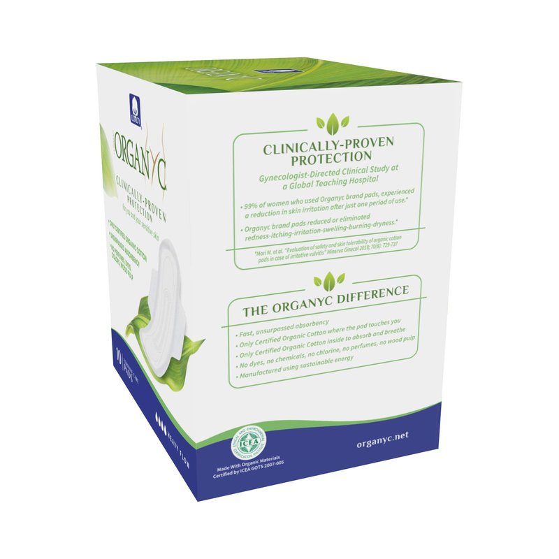 ORGANYC Hypoallergenic 100% Organic Cotton Pads Night Wings, 10-count Boxes (Pack of 2)