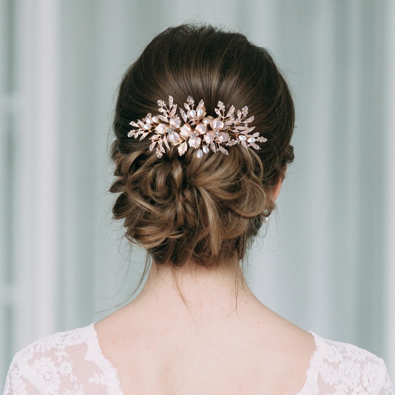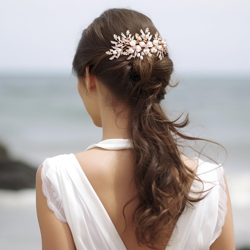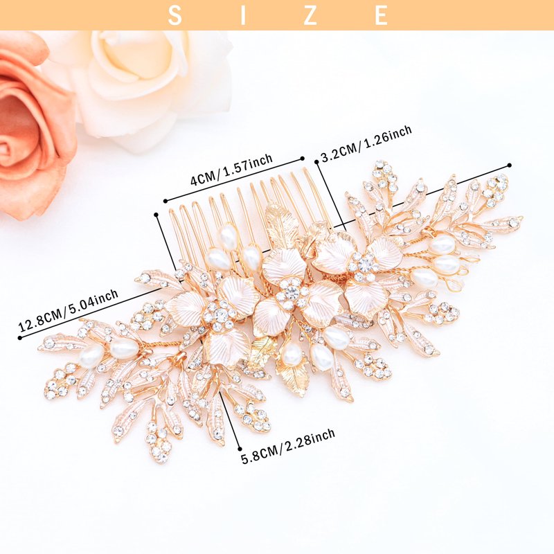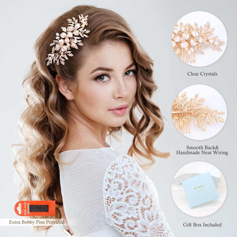 Oriamour Handmade Wedding Hair Comb Clip Rhinestone Bridal Hair Comb Piece, Hair Accessories for Brides Women (Gold)