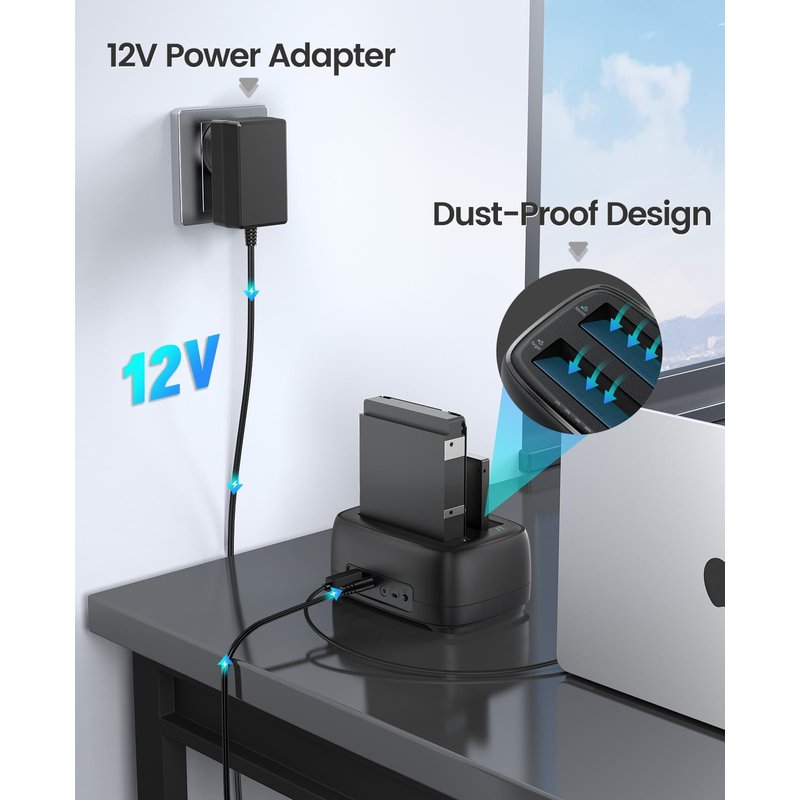 - 【Full Compatibility】 HDD Docking Station supported 40TB(2*20TB) compatible with 2.5"/3.5" SATA I/II/III HDDs and SSDs; dual Bay hard drive docking Station includes 3ft (1m) USB-A cables and universal power adapter which can use in most places and is small in size and easy to use