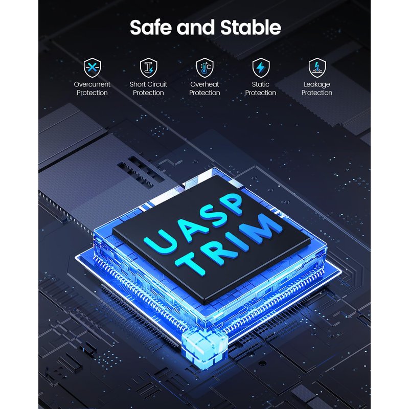 A hard drive dock with a high-performance controller chip ensures lightning-fast transfer speeds of up to 5Gbps through the micro-B output interface. Hard drive docking station with intelligent sleep technology, the device automatically enters sleep mode after 10 minutes of inactivity, saving energy and protecting data.