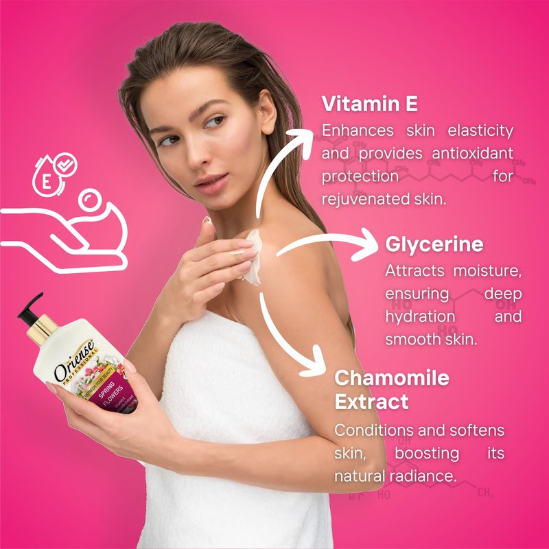 Oriense Body Lotion with Spring Flowers, Fortified Skin Protection and Softening, 16.9 fl. oz