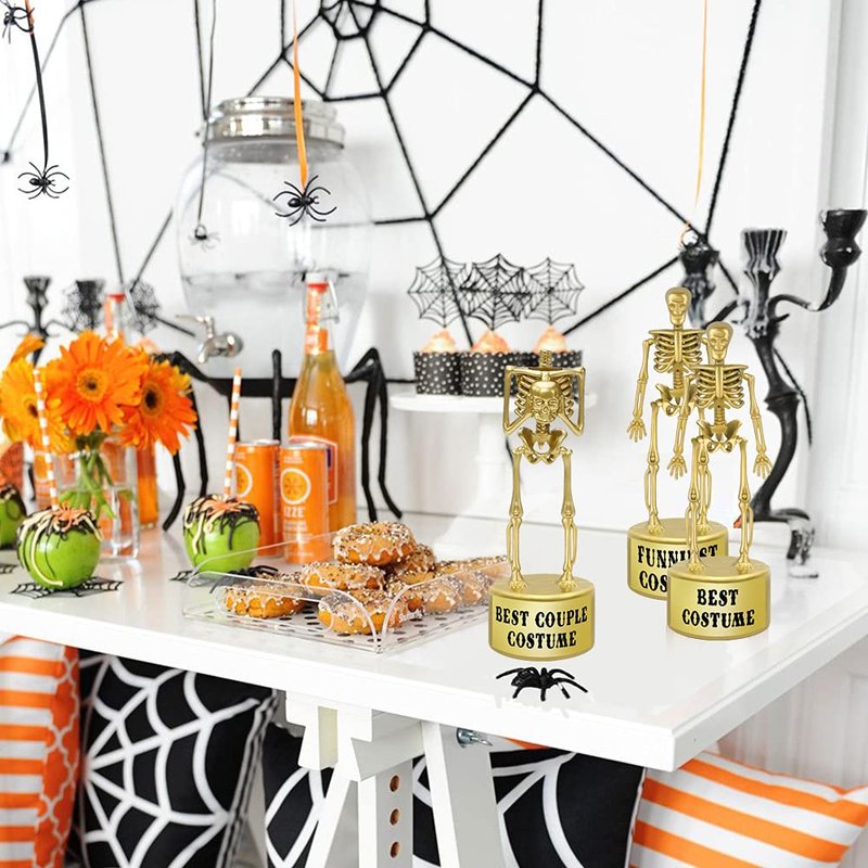ORIENTAL CHERRY Halloween Party Supplies - Golden Best Costume Skeleton Trophies for Kids Adults Contest Awards Prizes - 4 Pack