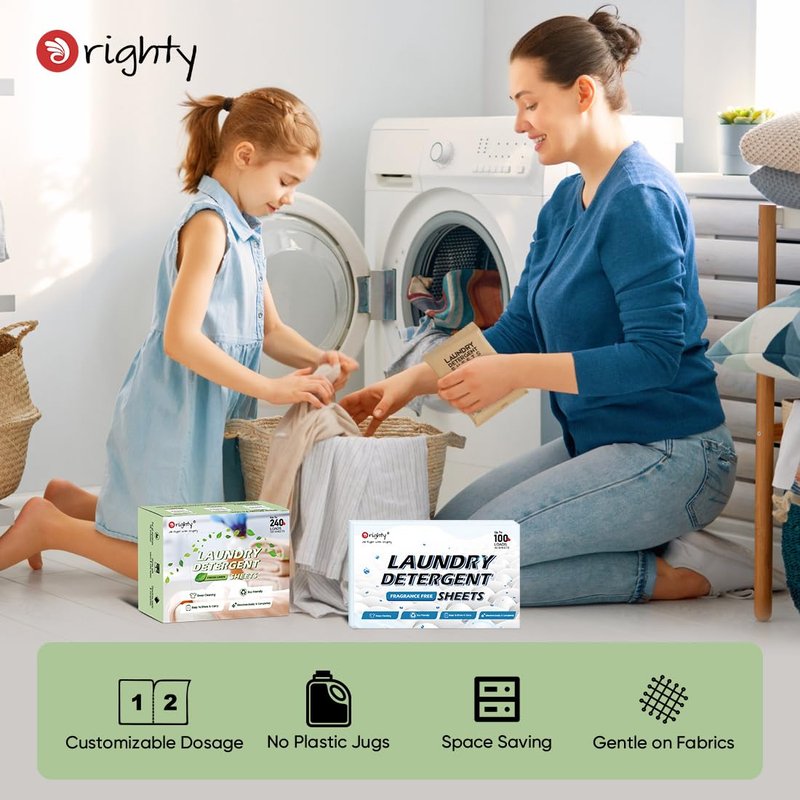 - [ZERO WASTE & NO MESS] - More convenient than pods, packs, liquids or powder, with our laundry detergent sheets, you don’t have to worry about heavy jugs, messy liquids, or clumpy powder. Orighty laundry detergent sheets are pre-measured and dosage customizable, avoiding overuse or spillage of products like liquid and powder.