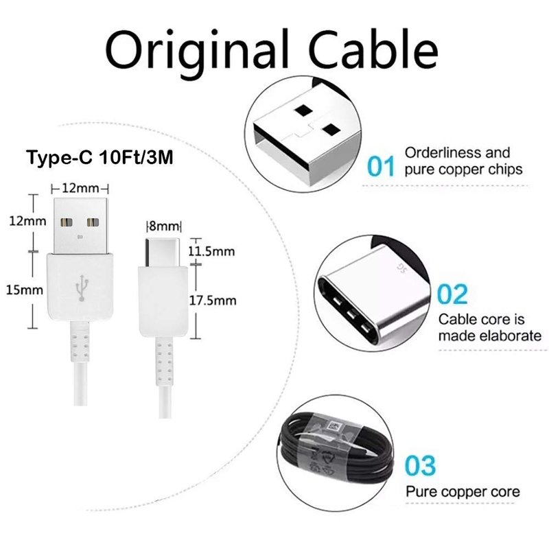 ⚡Original 10ft USB-C Cable Compatible with your Honor 9X with Fast Charging and Data Transfer. (WHITE 3M)
