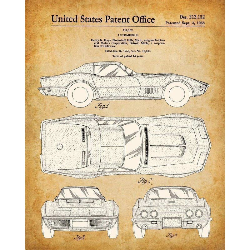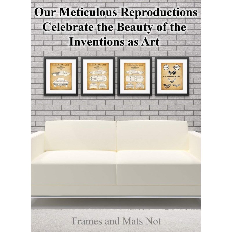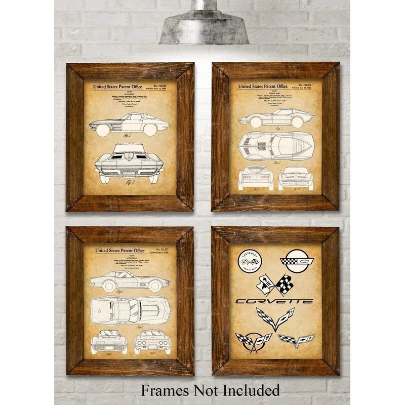 Original Corvette Patent Art Prints - Set of Four Photos (8x10) Unframed - Makes a Great Man Cave Decor and Gift Under $20 for Corvette Owners and Car Enthusiasts