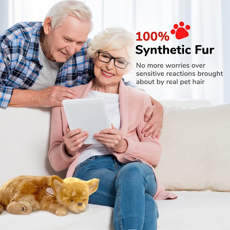 - Hassle-Free Alternative to Real Pets - Want a pet without the commitments? Feel the joy of having a companion you don't have to care for. Having our fake dog means no messy feedings, dander, fleas, litter cleanups, and pricey vet appointments.