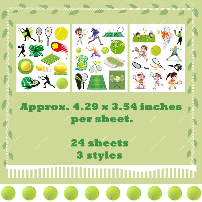 OriniPlay 300 Pieces Tennis temporary Tattoos Stickers for Kids - Tennis Sports Themed Party Supplies Decorations Tennis Racket Baby Shower Birthday Party Tattoos(24 Sheets)