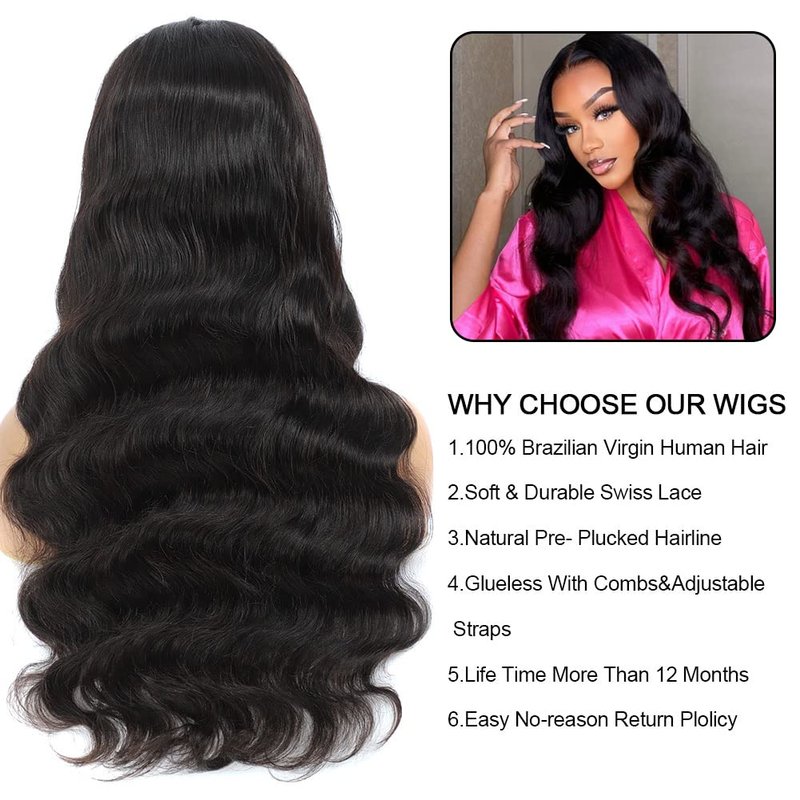 - BODY WAVE WIG MATERIAL: Unprocessed Brazilian Virgin Human Hair is Cut Directly from Young Girl Donor's Head, Soft, Comfortable, No Tangle, No Smell, Without Any Animal Hair or Recycled Hair.