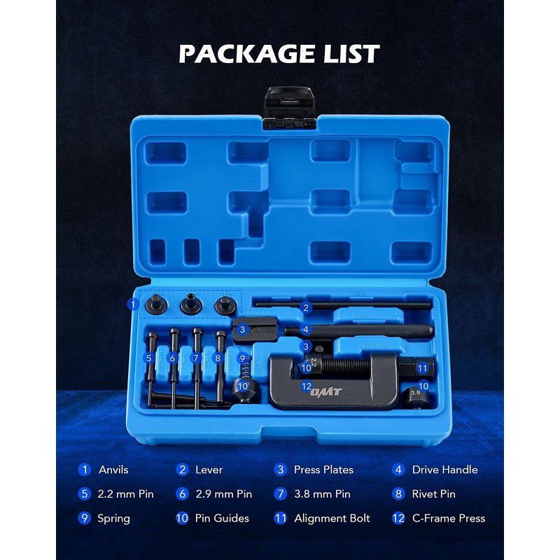 - EFFECTIVE SET: Orion Motor Tech's chain breaker tool is the ideal assistant to help you replace any worn motorcycle chains, knock links out of long bike chains, or extend chains that are too short