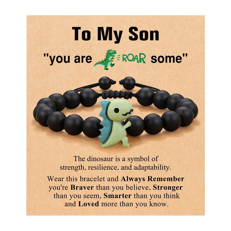 - 【Dinosaur gifts for son】-- Cute and meaningful bracelet gift for son with dinosaur charm to tell him "if you feel scared or nervous, take a look down at your tiny dinosaurs."