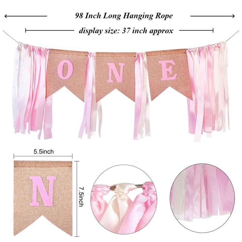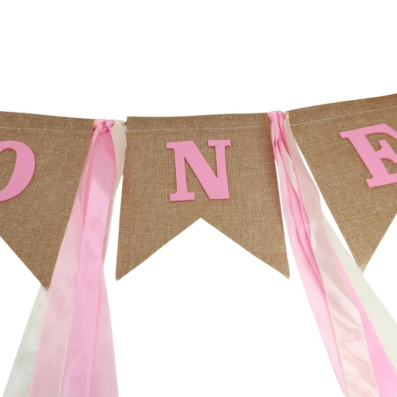 - Burlap Highchair Banner: designed with a word of ONE, idea for 1st birthday party. Pre-strung, fits most standard high chairs, birthday banner or photo prop