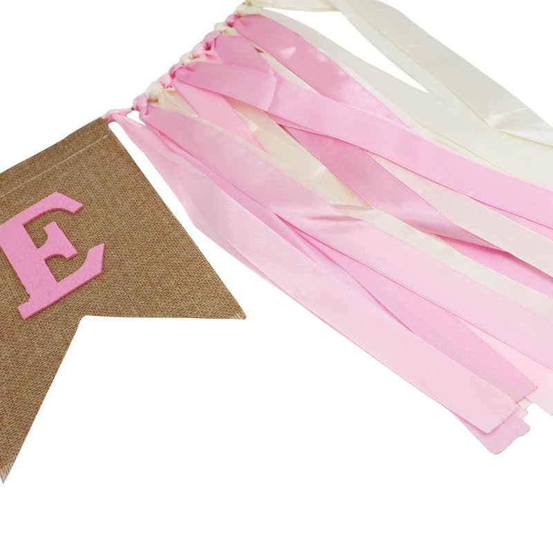 - Material: satin ribbon + burlap highchair banner, sponge birthday hat and cake topper