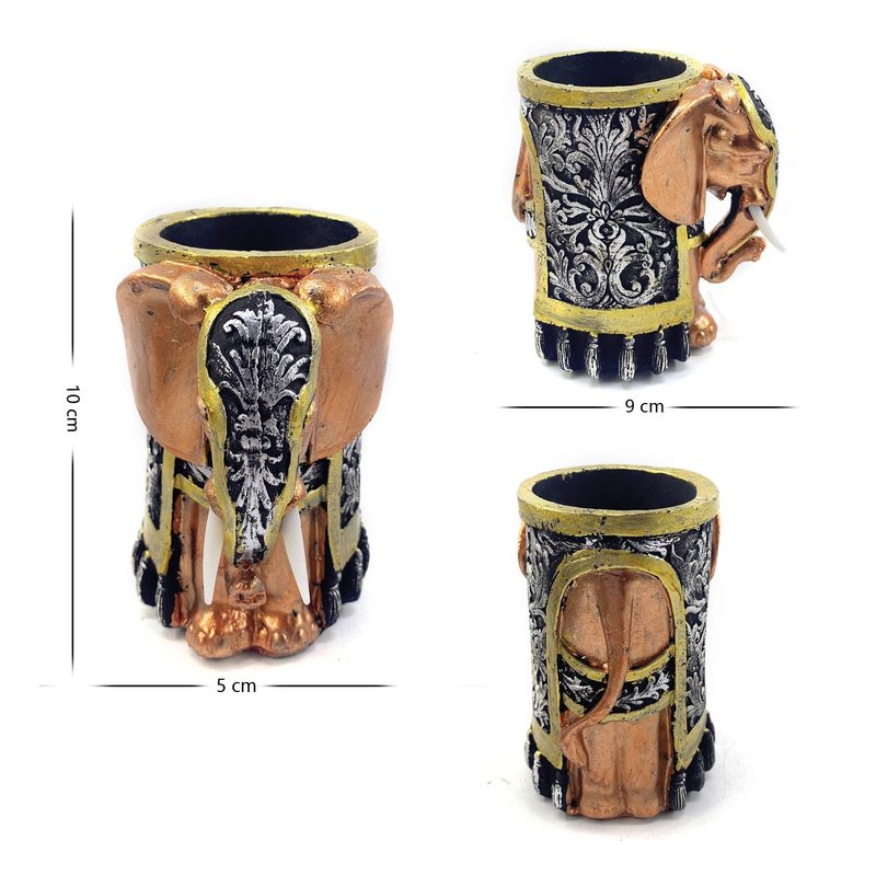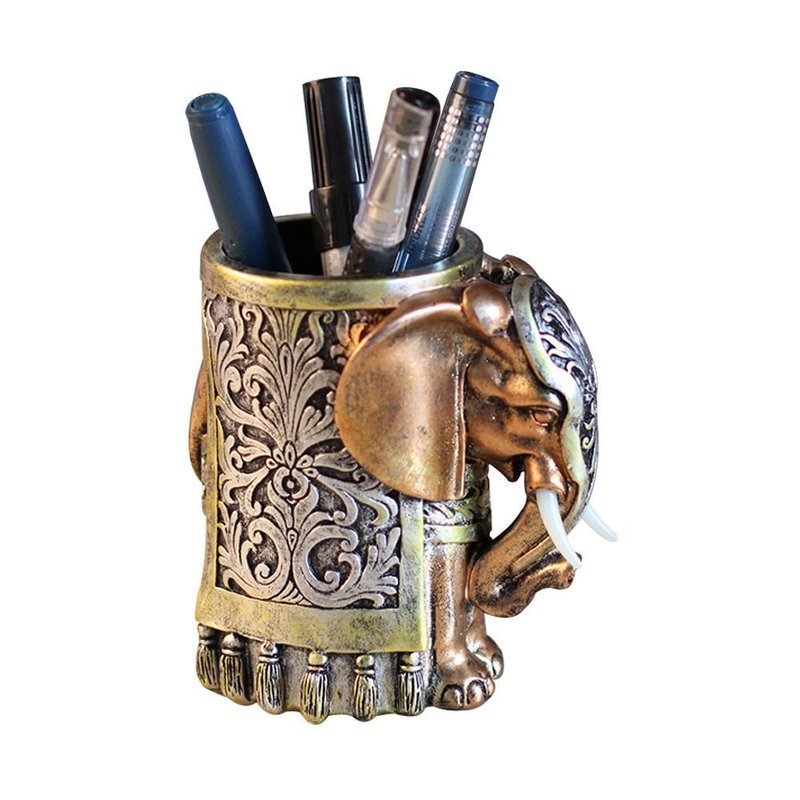 Detail.Name: pencil holder.Material: resin.Size:2" x 4" x 4.5".Style: modern.Update your desktop with this stylish pencil cup.Exquisite elephant pencil holder, also a great gift for home or office decoration.Suitable for holding pens, pencils, rulers, cosmetic tools and highlighters to keep your things in order.With this Pencil Holder you can collect your stationery and keep a tidy order desk appearance.Great gift to your children, family members and friends, they must love it.Package Include.1 x pencil holder
