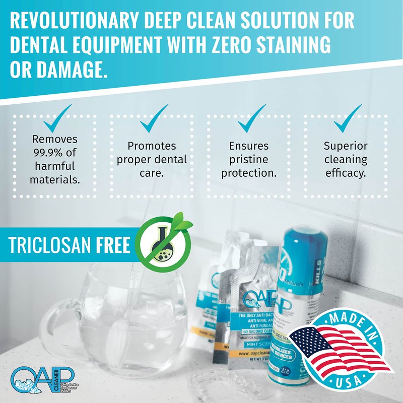- OAP CLEANER was developed by a team of dental hygienists, disappointed with the orthodontic cleaners available. They formulated a comprehensive yet gentle cleaner that would have dental and orthodontic appliances LOOKING and FEELING brand new. No more ineffectual tablets or peroxide-based cleaners that ruin expensive dental appliances. OAP Cleaner – the cleaner dental professionals trust!