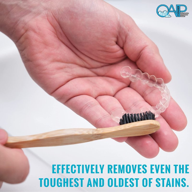 - EASY-TO-USE MOUTH GUARD CLEANER Unlike most orthodontic and dental cleaning products, which require a time consuming process, OAP Cleaner does the job in just 60 seconds. You can effectively clean all harmful substances, plaque, stains and odors that inhabit your orthodontic or dental appliance with an easy pump, scrub, and rinse clean!