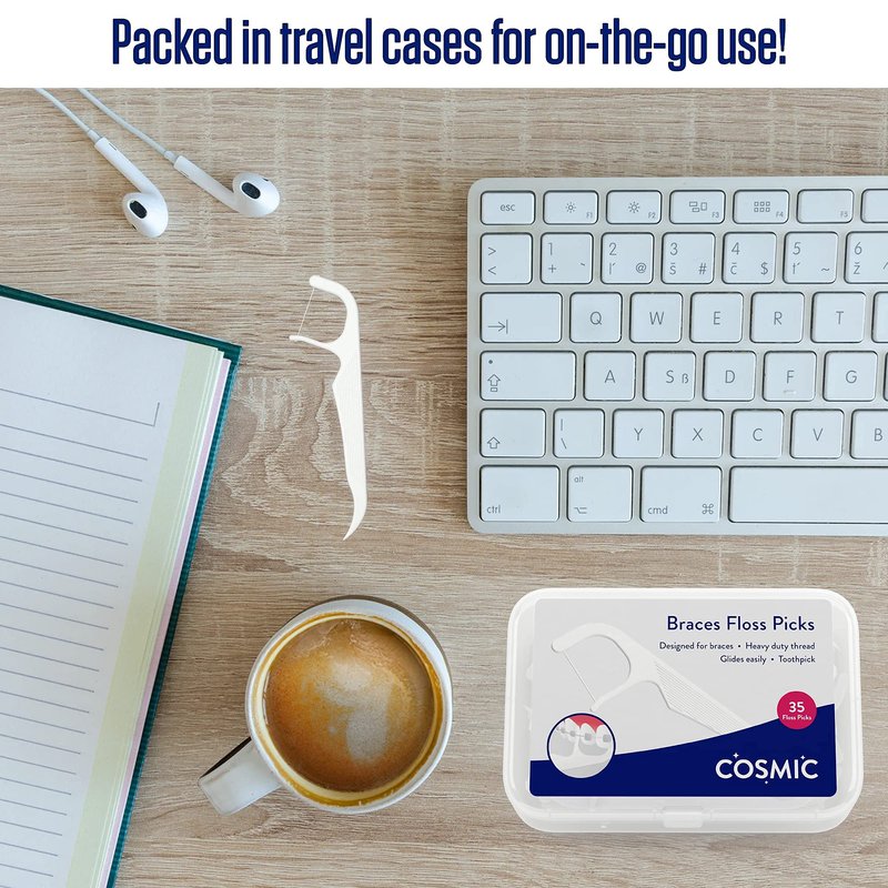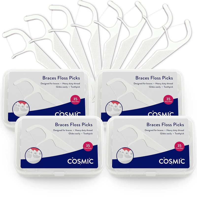 - FLOSSING WITH BRACES? If flossing without them is challenging, cleaning teeth with braces doesn't have to be as stressful. Cosmic has redesigned regular floss picks so kids and adults can maintain their oral hygiene with orthodontic flossers for braces that scrub out trapped food even in areas where a water flosser can't reach.