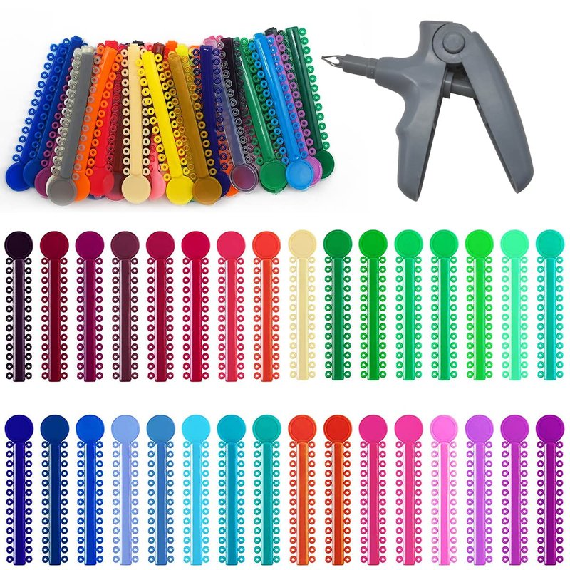 Orthodontic Ligature Ties and Gun Tool Kit - 1040 Pcs Multi-Color Rubber Bands for Braces