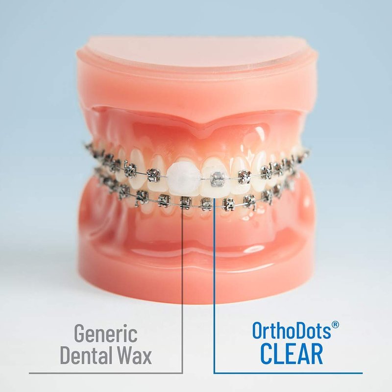 - GOES ON CLEAR & STAYS ON: Made of clear, medical-grade silicone, OrthoDots are 17 times clearer than regular braces wax. They stay on even while eating or drinking. Non-toxic and latex-free, they're safer than tooth wax.