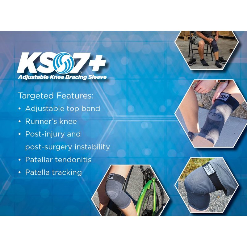 - The KS7+ offers ultimate protection and helps with knee pain, patella tendonitis, arthritic knees, runners knee, improving balance and reducing swelling with our Compression Zone Technology.