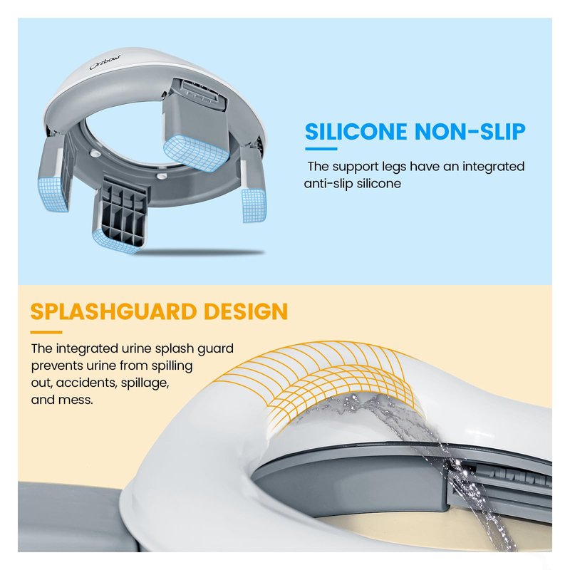 - 💪 𝐒𝐓𝐀𝐁𝐋𝐄 𝐏𝐎𝐓𝐓𝐘 𝐓𝐑𝐀𝐈𝐍𝐈𝐍𝐆 𝐒𝐄𝐀𝐓: Designed with more stable 4-point Fixing Structure, Groove Fastening System and Anti-slip 4 Support Legs with TPR, Orzbow Carry Potty is extremely safe for babies. Orzbow Toddler Potty is also ergonomically designed to fit the curve of the thighs to make it more comfortable for toddlers to encourage good toilet training habits.