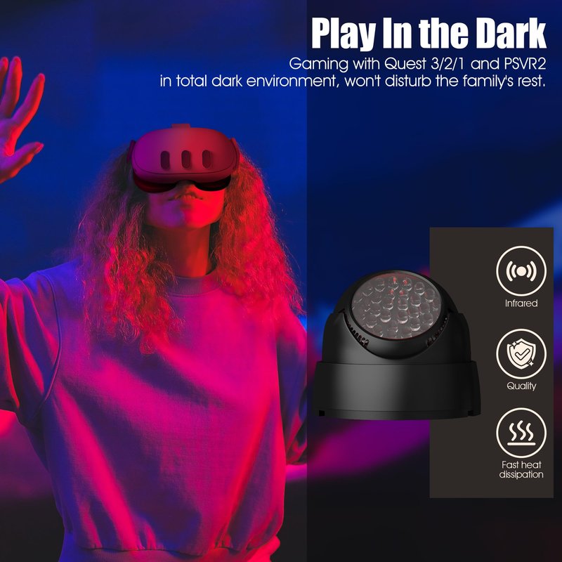 Orzero Ir Illuminator Infrared Light Compatible for Quest, Quest 2, Enhance Hand Tracking Immersive No-Light Disturbance Increase Sensitivity with Power Adapter - Black