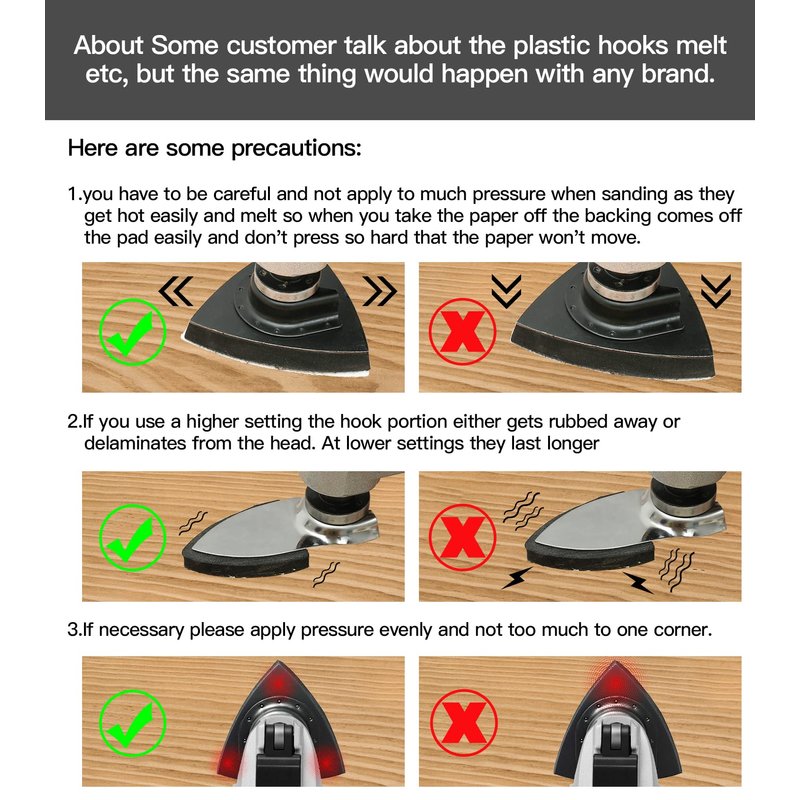 - Triangle Sanding Pad: By chrome coating holder and PU material pad composition, double face & hook and loop type, multitool sanding pads size: 80mmx80mmx80mm, fit sandpaper size: 80mmx80mmx80mm.