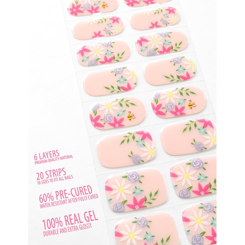 Osesshia Semi Cured Gel Nail Strips, 20 pcs Nail Wraps, Glaze Gel Nail Stickers, Salon Quality French Manicure, Full Decal Gel Polish Strips, Long Lasting SCG, Easy on, UV Required (Daisy Morning)