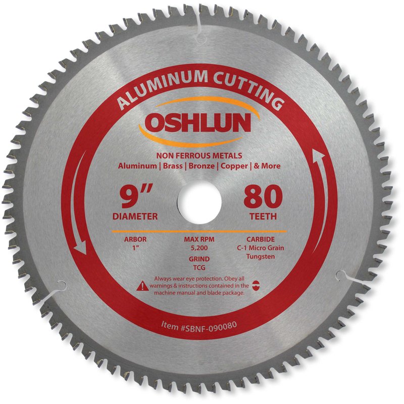 Oshlun SBNF-090080 9-Inch 80 Tooth TCG Saw Blade with 1-Inch Arbor for Aluminum and Non Ferrous Metals, Bronze