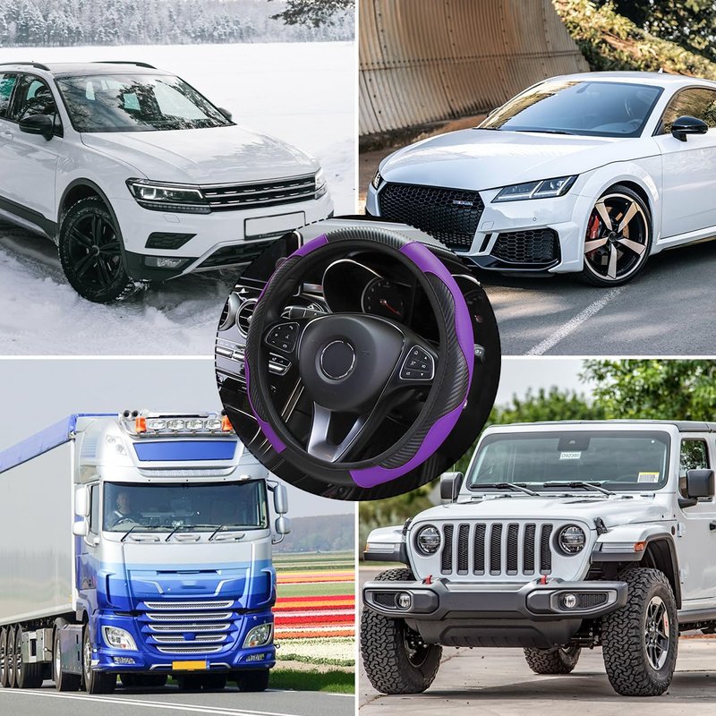 Osilly Car Steering Wheel Cover, 15 inch Carbon Fiber Microfiber PU Leather Elastic Steering Wheel Protector for Men Women, Anti-Slip Breathable Car Interior Accessories for Most Cars (Purple)