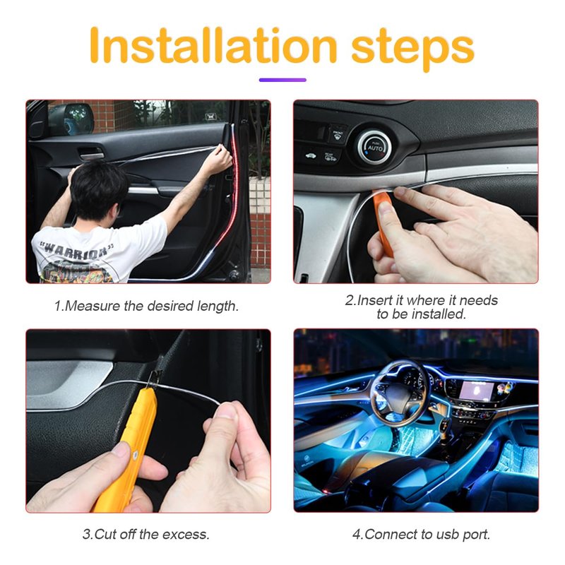 - 【Wide Application】: In addition to being used for car interior, the car light strip kit can also be used as outdoor decoration for houses, fountains, costume stages, shopping windows, and almost any other places you can think of, bringing a lively and colorful atmosphere to your party.